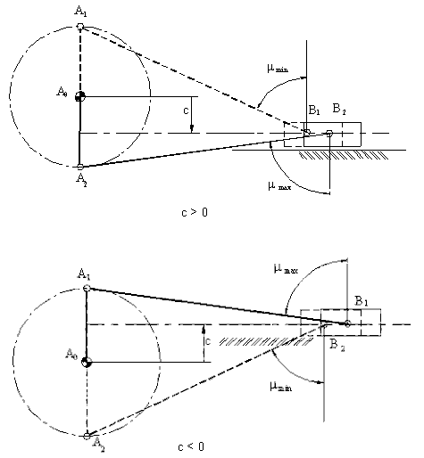 If c is positive as shown below, transmission angle is critical when q 12=2700. If c is negative, then the most critical transmission angle is at