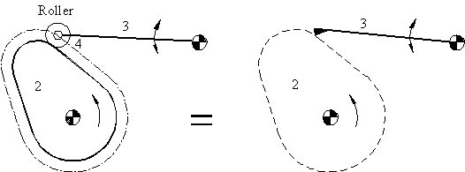 end of the follower, the roller is free to rotate to reduce the sliding