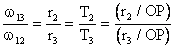 We have or In order to determine the direction of rotation of link 4 relative to link 2, consider link 2 rotating in a certain direction i.e. let us assume clockwise rotation when viewed from the right. The arrow that represents the direction of rotation will pierce into the paper on the top and will pierce out of paper at the bottom of gear 2 as shown. Link 3 will rotate such that at the point of contact it has the same velocity magnitude and direction with link 2 (Point P1). Link 4 will rotate such that at the point of contact it has the same velocity magnitude and direction with link 3 (Point P2). Hence if we place (+) and (.) signs satisfying these requirements, we see that link 4 rotates in the same direction with respect to link 2. Therefore: Example.