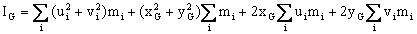Since ui and vi are the coordinates of the particle with respect to the center of gravity Suimi = Svimi = 0. Therefore:
