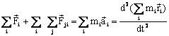 Where Fi is the external force acting on particle i and Fji is the force acting on particle i due to particle j. Fji is commonly known as the internal force. If we consider all the particles within the rigid body: