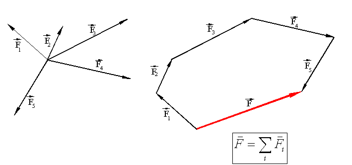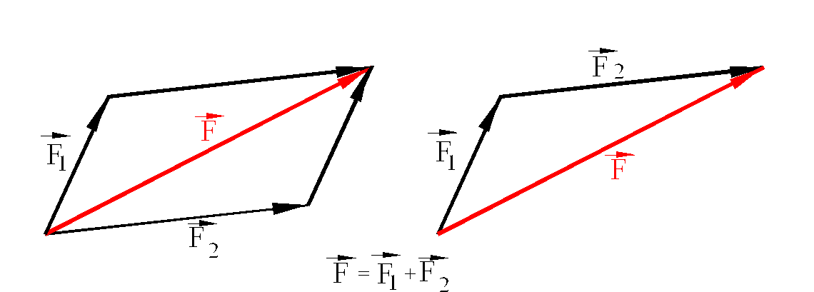 Addition and subtraction of concurrent forces (forces whose lines of action intersect at one point) obey the parallelogram law of addition that is schematically shown below. The addition can be carried out graphically by placing the force vectors one after the other in head-to-tail fashion, in which case half of the parallelogram is drawn.