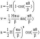 In figure below the displacement, velocity and acceleration curves are shown. The maximum velocity and acceleration values given by equations: