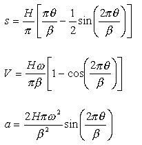 Also the equations given for the normalized motion curves can be converted for any rise H, angular velocity w and crank rotation b by multiplying the equation by H substituting q/b instead of q. For example the cubic #2 curve is given as: