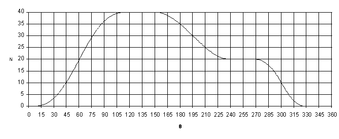 Rise 40 mm in 1200 crank rotation (cycloidal motion)