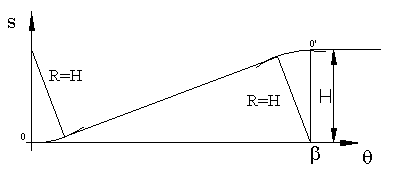 Also assume when s = 0 q = 0 (rise is to start when t=0). With this assumption when s = H , q = b. when these boundary conditions are applied to the linear equation: a0=0 and a1=Hw/b. The linear motion curve is: