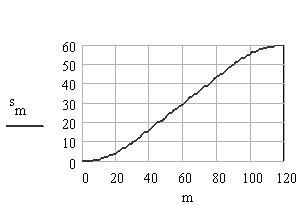 For the deceleration period q2 < q < b again we have a second order algebraic curve s=c0+c1q+c2 q2 for the motion. When q = q2 = p/2 s=50 mm, ; and when q = b, s=H=60 mm and . Using these boundary conditions