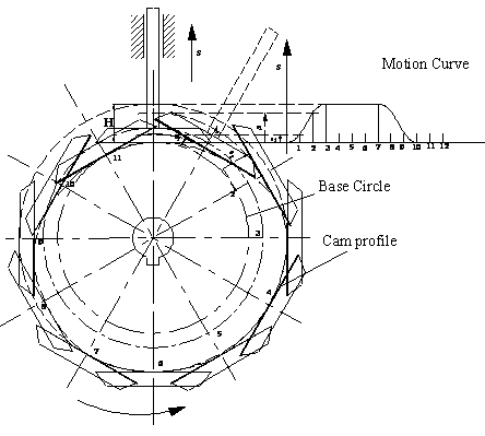 After the motion curve is defined and the cam size is determined, the actual cam profile can be found. One can either use geometrical or analytical method for cam profile determination. Since the accuracy of the cam profile is very important, mathematical methods are preferred.