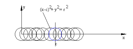 Is the equation of a circle with radius r (constant) and center (c,0). Since c is the parameter for each value of c we have a different circle. Hence we have a family of circles.