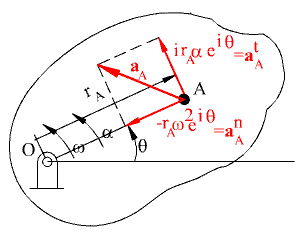 We can as well use the complex number representation of the vectors and their time rate of change. For example in complex numbers the position vector of point A is (Fig.2.55):