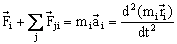 Where Fi is the external force acting on particle i and Fji is the force acting on particle i due to particle j. Fji is commonly known as the internal force. If we consider all the particles within the rigid body: