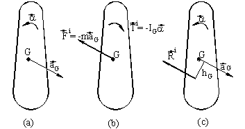 In a body moving with a known angular acceleration and a linear acceleration of the center of gravity, the vector sum of all the external forces and inertia forces and the vector sum of all the external moments and inertia torque are both separately equal to zero.