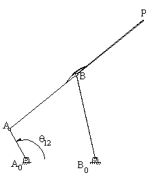 The location of coupler point, P, for any crank angle q12 can be determined from the equations: