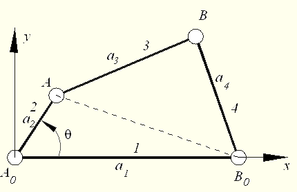 instead of 4, the degree of freedom of the four-bar mechanism is 1 and