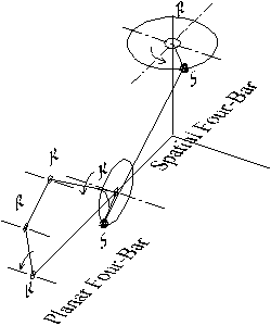 planar four-bar mechanism. The resulting mechanism has 1 degree-of-freedom.