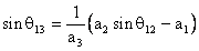 a2sin q12 = a1 + a3sinq13 (2)