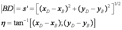 The distance BD and the angle it makes with the horizontal is:
