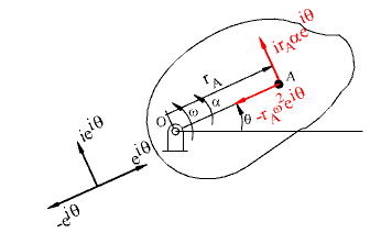 Velocity and acceleration of point A on the rigid body in rotation