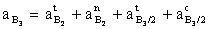 Differentiating the velocity equation once more, we have the acceleration of point B3 as