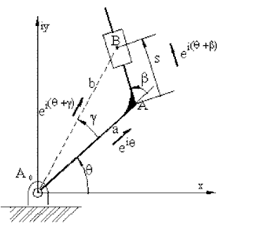 Where b is the variable distance A0B and g is the variable angle between A 0A and A 0B on link 2. This vector is the position of point B on a coordinate frame fixed on link 2. Hence: