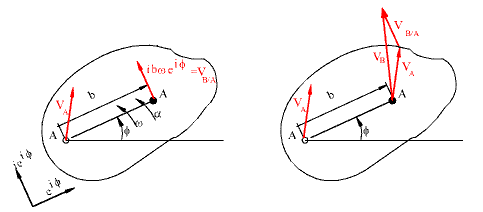 where b= |AB| and f is the angle between the line AB and the positive real axis. b if term shows the position of point B with respect to A and b length is constant only if both A and B are on the same rigid body. Since we are to be concerned with the relative motion, let us assume that the velocity and acceleration of point A is known. (V A and a A are known). Differentiating the above equation with respect to time: