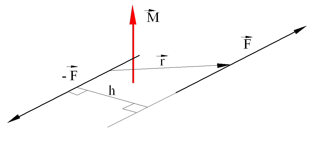 The arm of a couple is defined as the perpendicular distance, h, between the two lines of action. The moment of the couple is another vector M that is normal to the plane of the couple and is in accordance with the right-hand rule. The magnitude of the moment is given by the product: M=hF. The moment vector can be determined by the vectorial product: (M=rxF) Where r is the position vector from a point on the line of action of F to another point on the line of action of F. Note that: