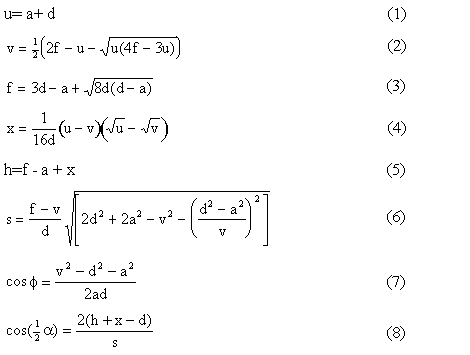 a = 21.94; h = 140.43 mm; f = 162.35 mm; d = 38.07 mm; =151.260; = 52.710 olarak bulunur.