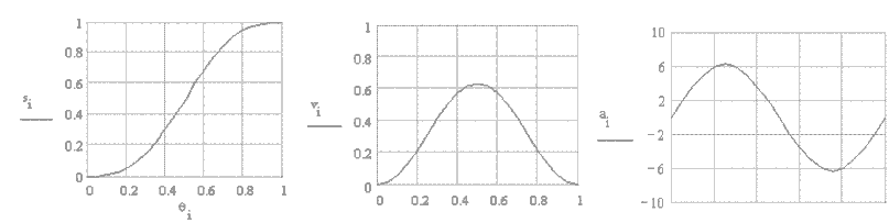 The boundary conditions is when q=0, s=0 and (since the motion starts from a dwell period, we want continuity on velocity); and when q=q1, s=10 mm and Using the conditions for q=0 results c0=c1=0. The condition for q=q1 results with the equations: