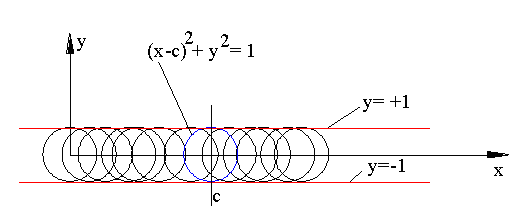 Thus the horizontal lines y=1 and y=-1 are the envelopes of the family of circles as shown.